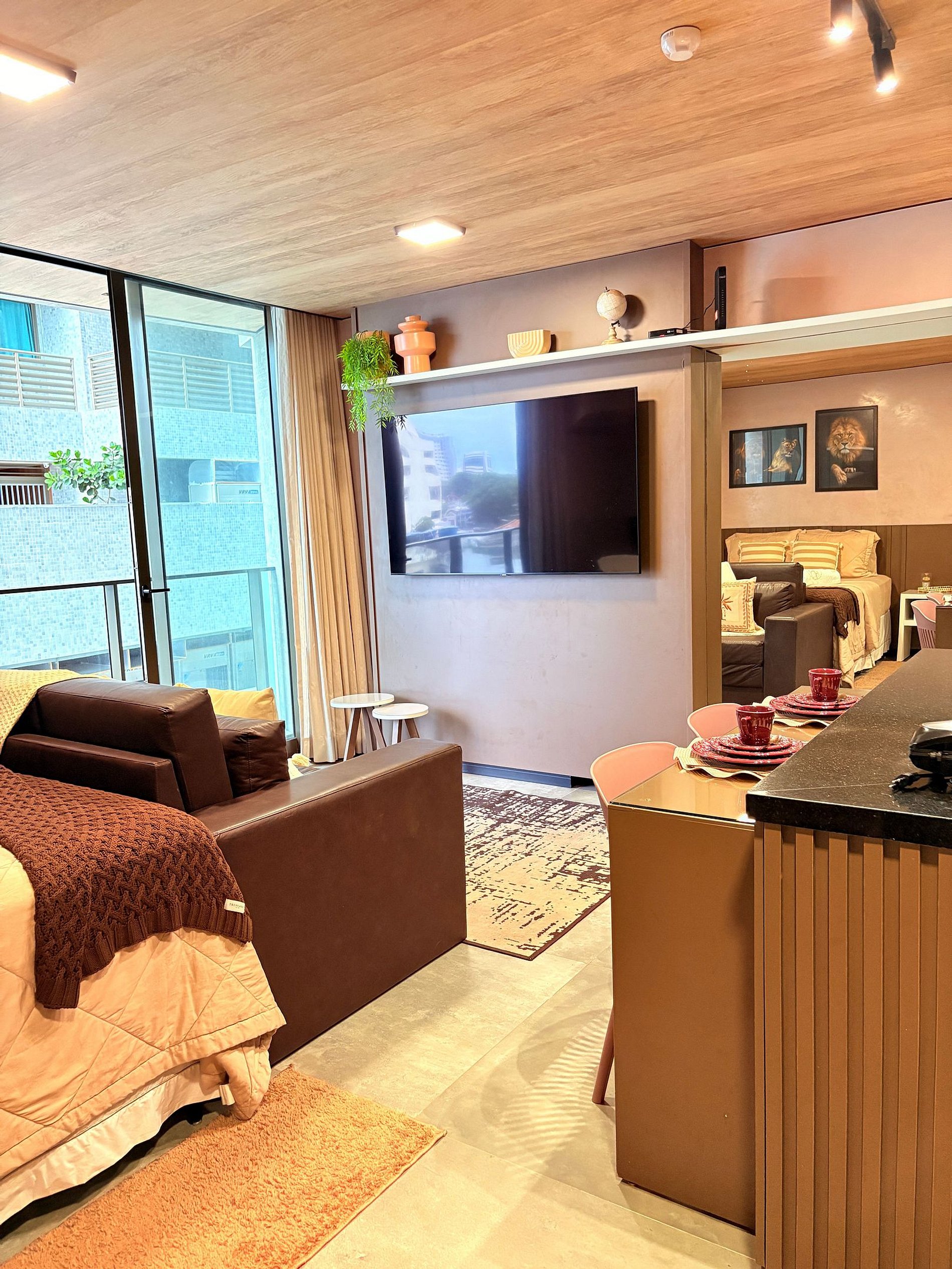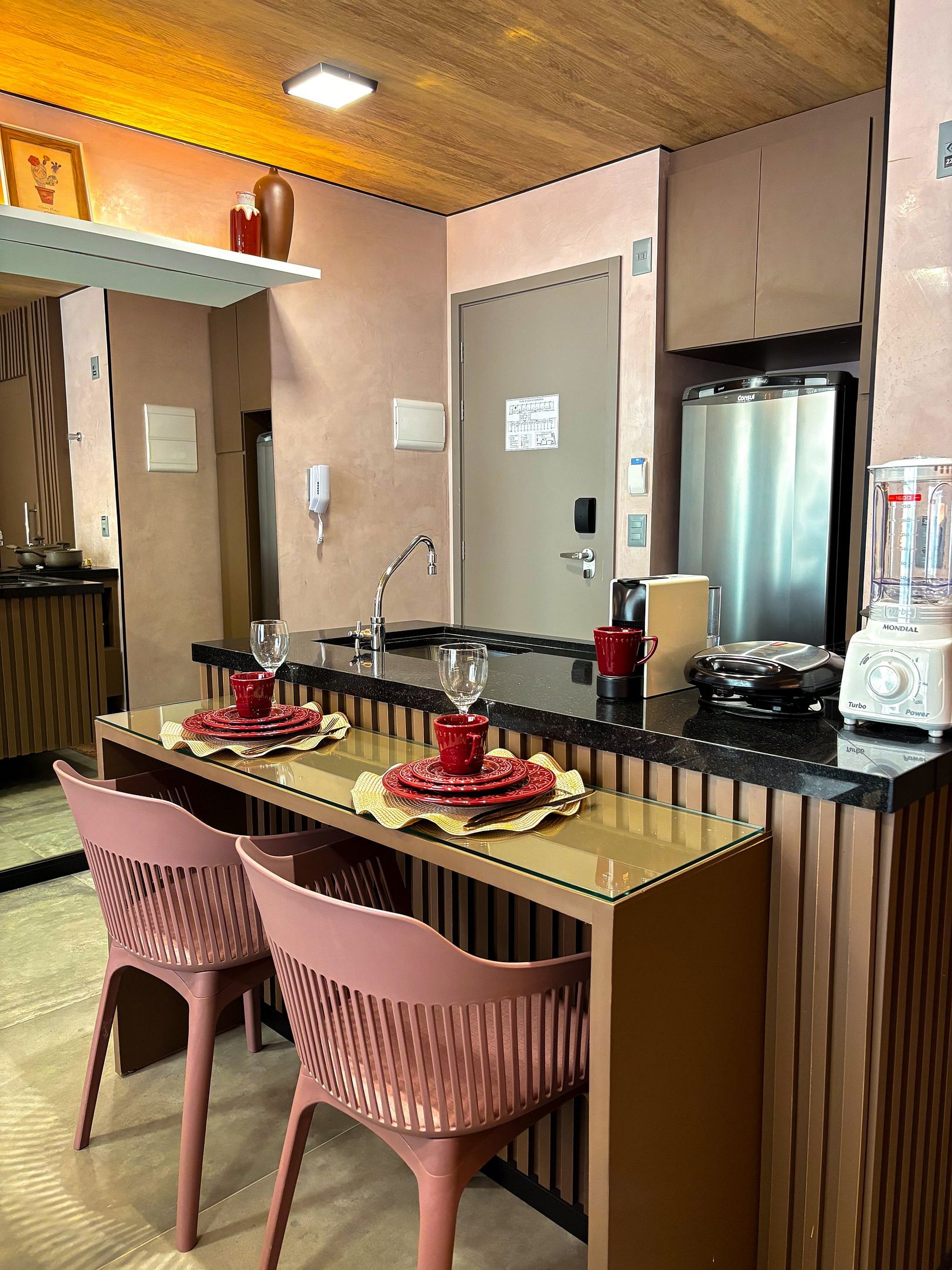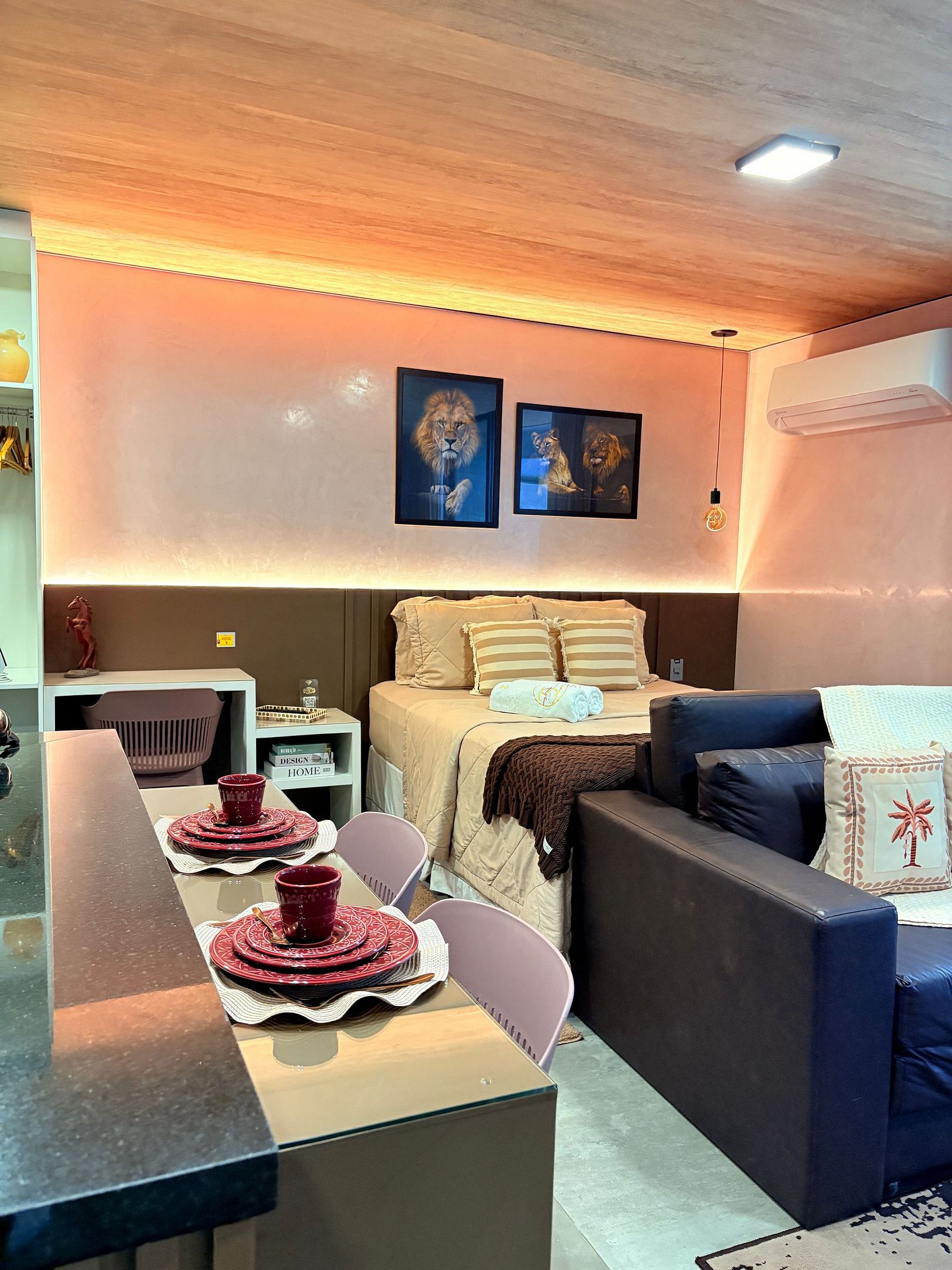 Ambiente moderno, acolhedor e totalmente equipado, pensado em cada detalhe para proporcionar bem-estar e uma experiência memorável.